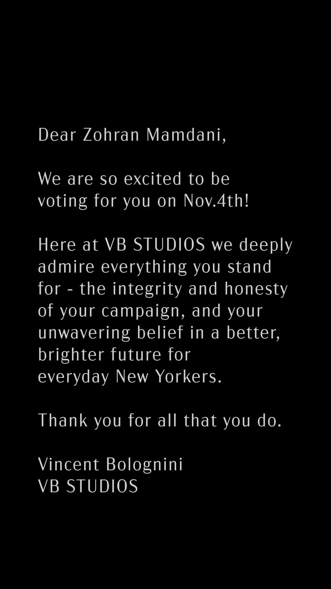 Zohran Mamdani has excited all of New York with his messaging and positive approach towards helping all New Yorkers, including us at VB Studios